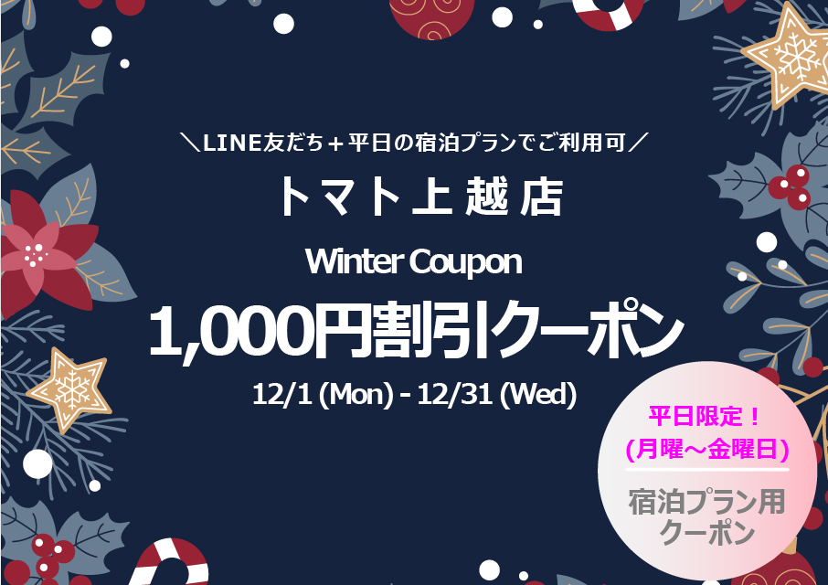 プチホテル トマト(長岡) 2025.11.30 【プチホテルトマト】12月キャンペーンのお知らせ